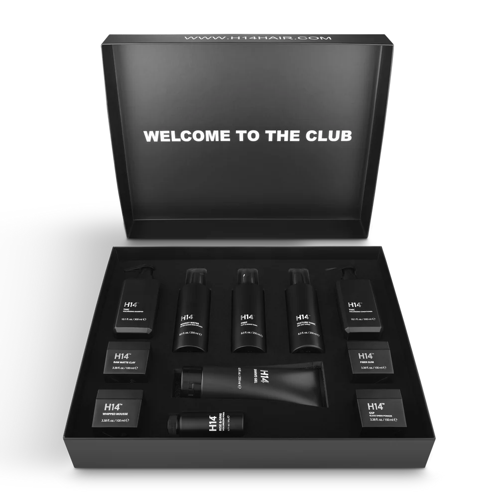Presentamos la H14 Collection, un set completo de productos de lujo para el cuidado y estilizado masculino, imprescindible en todo salón o barbería. Este exclusivo estuche ofrece una introducción integral a nuestra línea premium, con fórmulas meticulosamente elaboradas para elevar la experiencia de grooming. Cada producto está infusionado con los mejores ingredientes para garantizar un rendimiento inigualable y un estilo sofisticado.